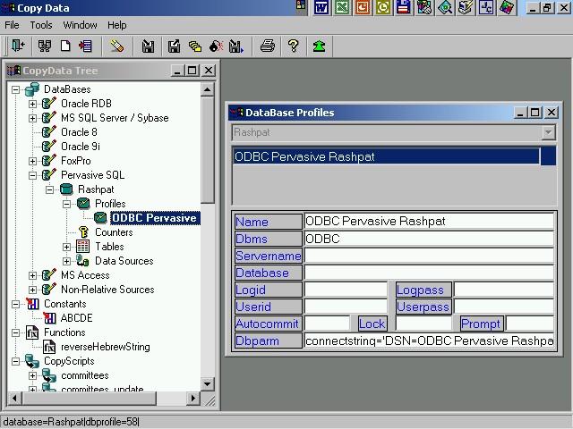 Opening a database profile ( database connection parameters ) from the CopyData Console.