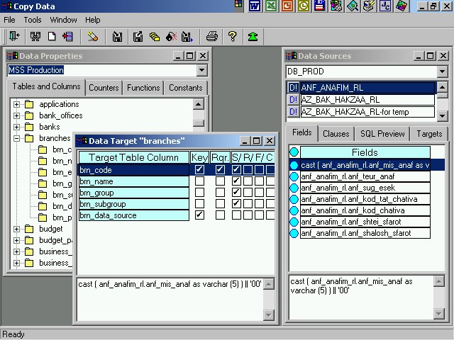 Another point of view. Data Sources and Data Properties ( i.e. Tables and Columns, Data Counters, Functions and Constants ) are opened as individual windows.